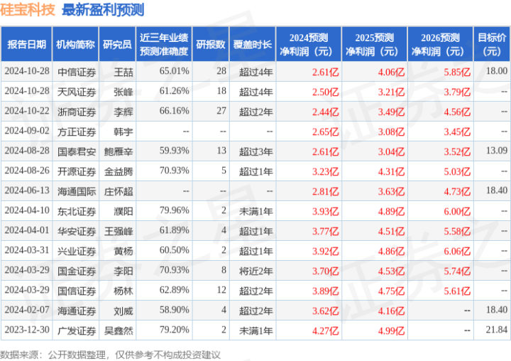 以下是详细的盈利预测信息: